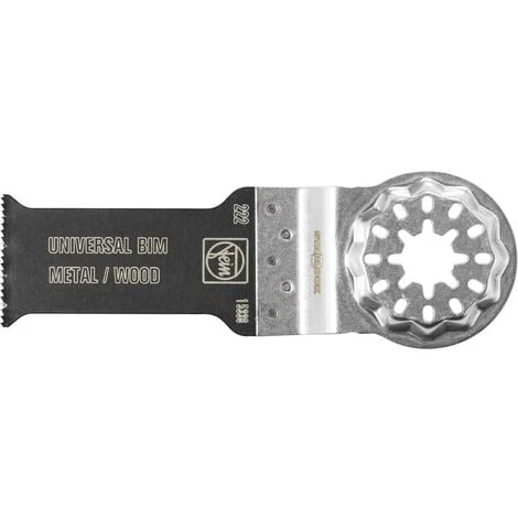 Bi-métal avec denture universelle avoyée. Large gamme d’utilisations pour tôles jusqu’à 2 mm, profilés en aluminium, tubes de cuivre, bois, plaques de plâtre et plastiques. Emmanchement StarlockPlus, adapté à tous les outils multifonctions StarlockPlus et StarlockMax ainsi qu’à tous les outils MultiTalent et MultiMaster de FEIN fabriqués avant avril 2016. Forme fine taillée pour une vitesse de coupe optimale et une bonne évacuation des copeaux.