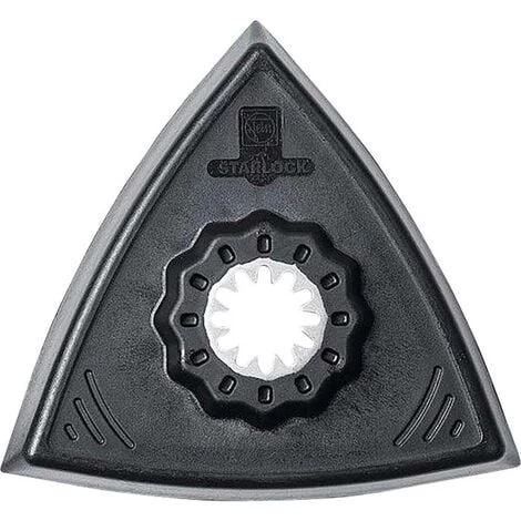 Modèle standard. Plaque de support en plastique pour éviter les dommages et les marques sur la pièce à travailler. Emmanchement Starlock universel, également adapté pour tous les outils multifonctions courants sur le marché. Forme triangulaire, fixation auto-agrippante.