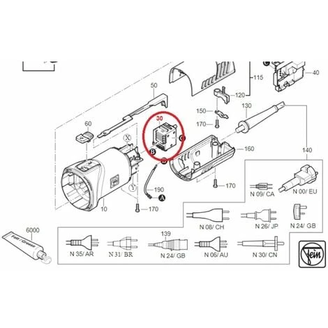 FEIN Commutateur pour meuleuse d’angle WSG • Contenu 1 pièce Convient aux outils d’alimentation fines suivants