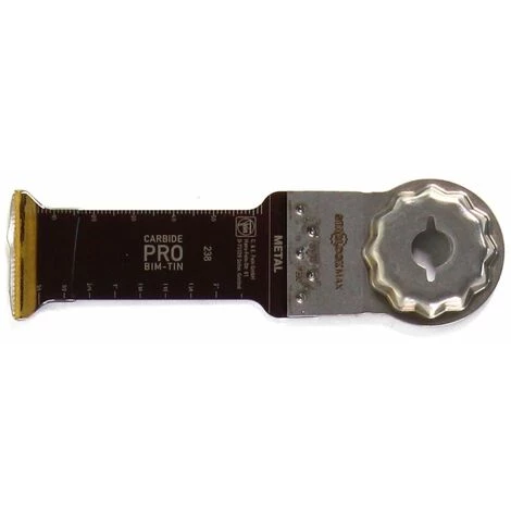 La nouvelle lame de scie en plongeante de Fein en carbure à revêtement de nitrure de titane, extrêmement résistante à l’usure, fait pâlir la concurrence. Avec une durée de vie 30 fois supérieure à celle des lames de scie en acier rapide et 100 % plus longue que celle des lames de scie en carbure non revêtues, c’est le choix idéal pour le travail des matériaux durs tels que les métaux ferreux, l’acier inoxydable ou les tuyaux en cuivre. Même les vis trempées (Spax) et les vis de machine à haute résistance n’empêchent pas la lame de scie de faire son travail. Même les matériaux abrasifs tels que la brique, la maçonnerie ou les panneaux de fibres de ciment peuvent être traités sans problème. De plus, l’usinage de laminés, de CFK (plastique renforcé de fibres de carbone) et de GFK (plastique renforcé de fibres de verre) ne pose aucun problème avec la lame de scie Carbide Pro. Avec les matériaux en bois tels que le bois dur ou les panneaux de particules, il obtient une très bonne performance de coupe. La forme étroite et taillée assure une vitesse de coupe optimale et une bonne évacuation de copeaux.