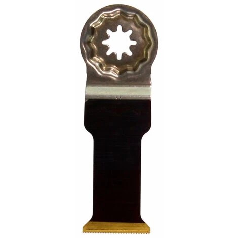 La combinaison du titane et de l’azote fait de la lame de scie plongeante au carbure le bon choix pour les matériaux durs tels que les métaux ferreux, l’acier inoxydable ou les tuyaux en cuivre. Le revêtement en étain permet d’utiliser la lame de scie même pour les vis trempées (Spax) et les vis mécaniques à haute résistance. Mais également idéalement adapté aux matériaux abrasifs tels que la brique, la maçonnerie ou les panneaux de fibres de ciment ainsi que le stratifié, le CFK (plastique renforcé de fibre de carbone) et le GFK (plastique renforcé de fibre de verre). En outre, la lame de scie a de bonnes performances de coupe et une bonne qualité de coupe dans tous les matériaux à base de bois tels que le bois dur ou les panneaux de particules. Il a une durée de vie 100% plus longue que les lames de scie au carbure non revêtu, ainsi qu’une durée de vie 30 fois plus longue que les lames de scie HSS. En plus d’une dureté très élevée, d’une insensibilité aux acides et aux alcalis, le nitrure de titane ne présente pratiquement aucun risque car il est ininflammable, non toxique et, de plus, biocompatible. La forme étroite et cintrée de la lame de scie garantit une vitesse de coupe optimale et une bonne évacuation des copeaux.