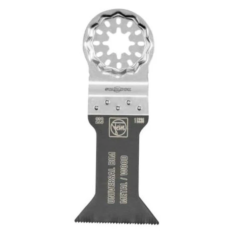 Lame de scie FEIN – E-Cut universelle BIM Starlock 55x44mm – 63502223250, offre une large gamme d?utilisations pour tôles jusqu?à 2 mm, profilés en aluminium, tubes de cuivre, bois, plaques de plâtre et plastiques.
