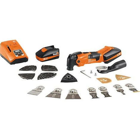 Contenu de livraison : – Batterie /Ah: 2 x 3,0 – Chargeur : oui- Mallette de transport : oui – E-Cut Long-Life 10 mm: 1 x – E-Cut Long-Life 35 mm: 2 x – E-Cut Long-Life 65 mm: 2 x – E-Cut Carbide Pro 32 mm: 1 x – Lame de scie HM ø 75 mm: 1 x – Râpe HM forme triangulaire: 1 x – Spatule: 1 x – Patin de ponçage perforé : 1 x – Feuilles abrasives grains 60, 80, 120, 180: 5 x – Dispositif d´aspiration : oui